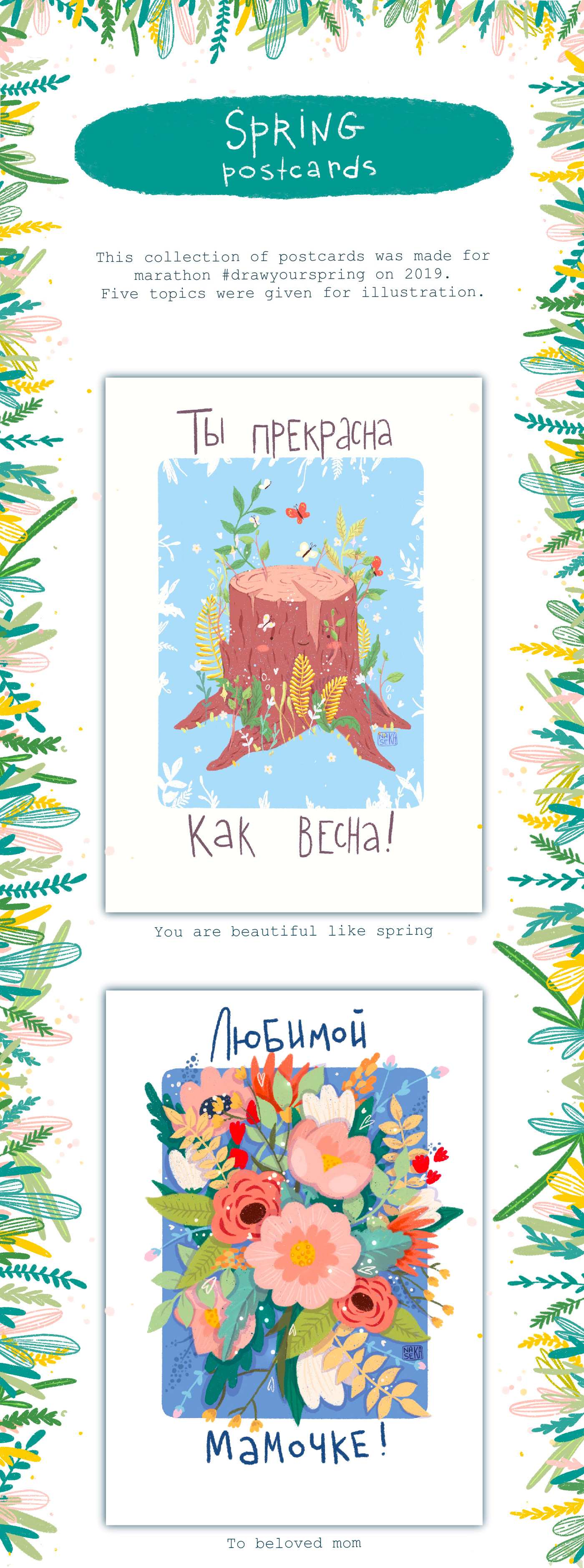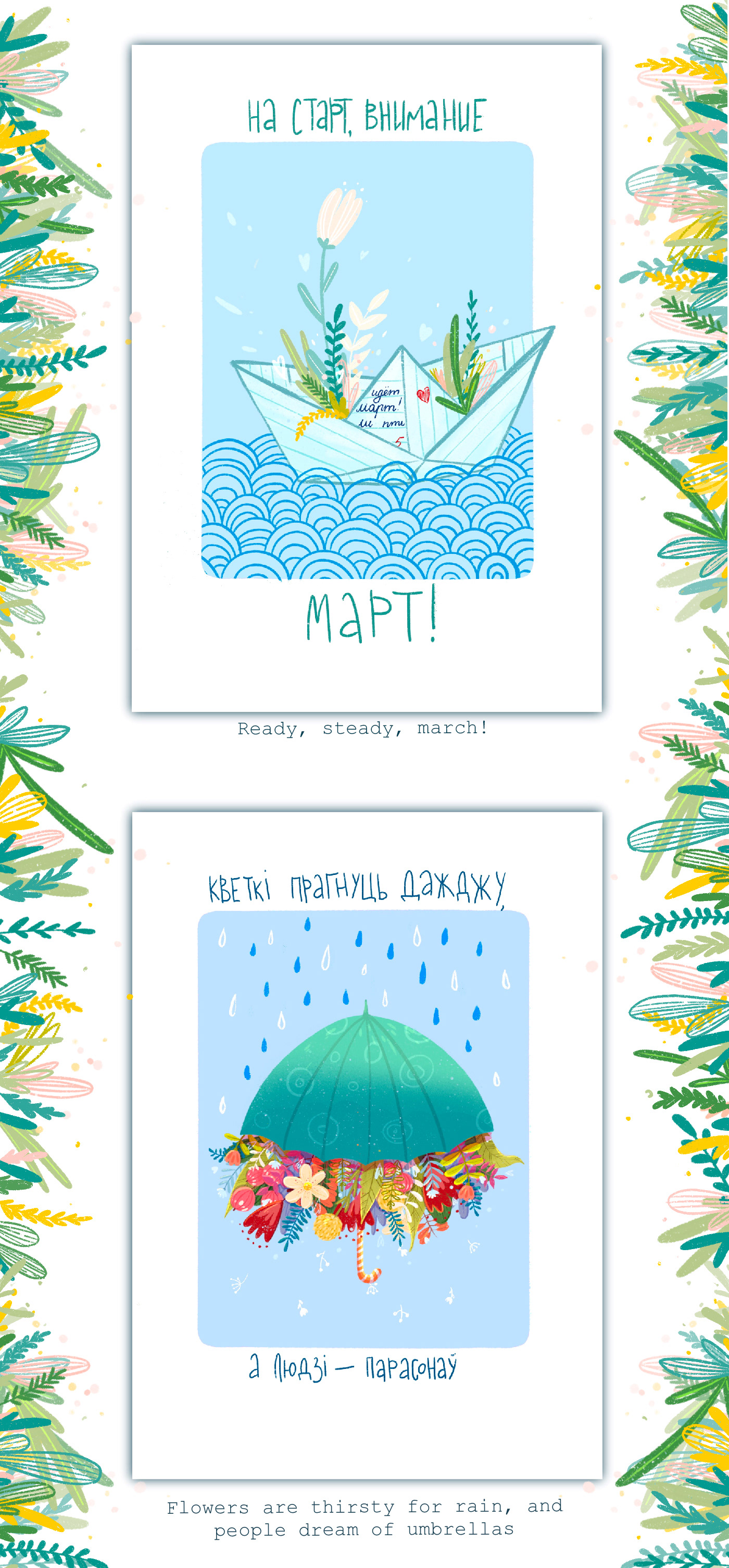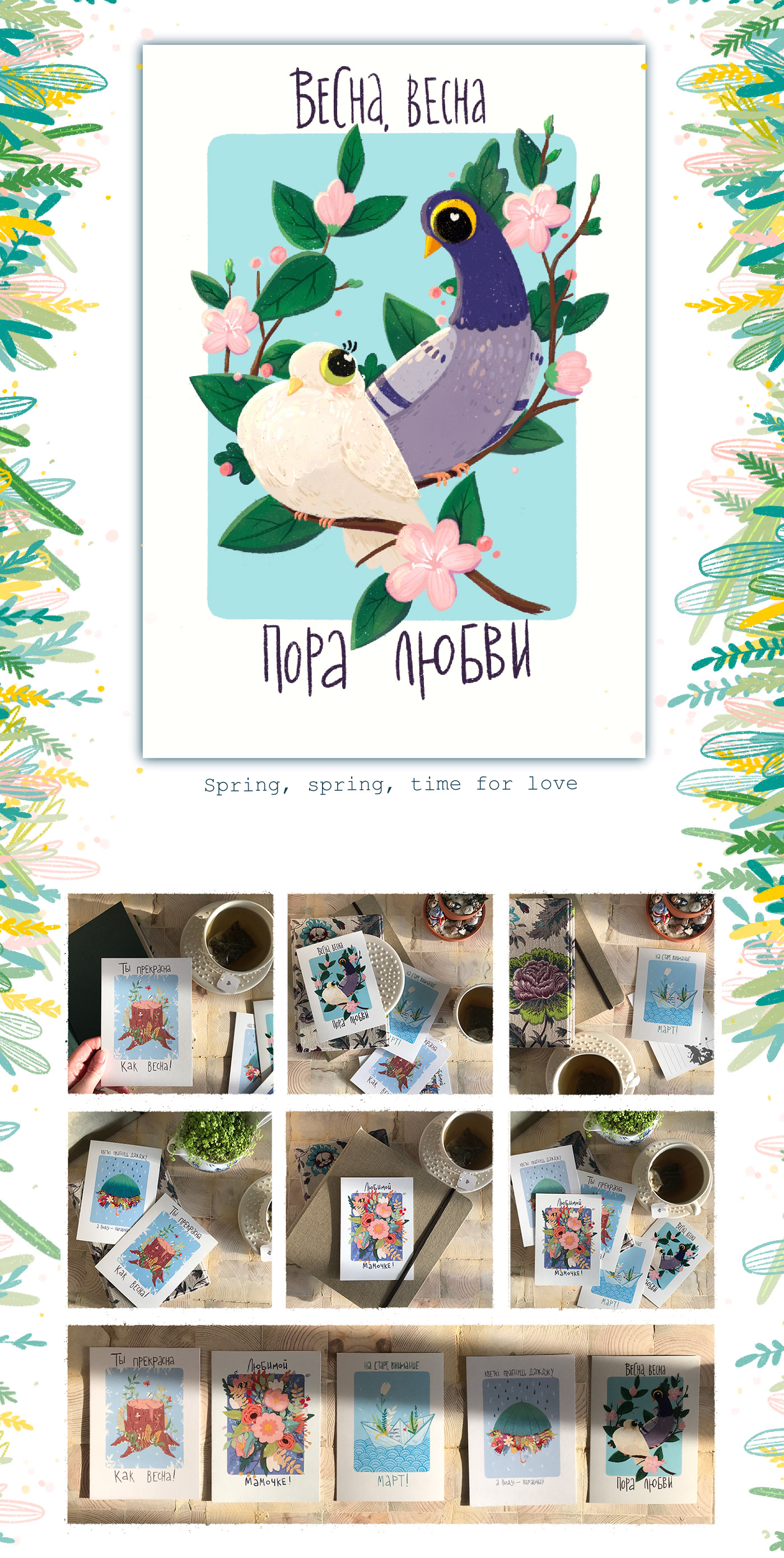 A small collection of spring postcards about spring, love, rains and flowers